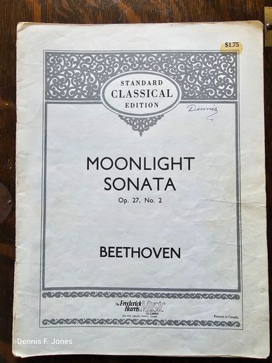 I performed in two of Mrs. Aquino's student recitals at the Dalhousie Arts Centre on the Dalhousie University campus in Halifax. The first year I played the first movement of Beethoven's Moonlight Sonata (Adagio sostenuto). This is my sheet music that we used for my lessons. The second year I played one of Bach's best-known pieces Solfeggietto.